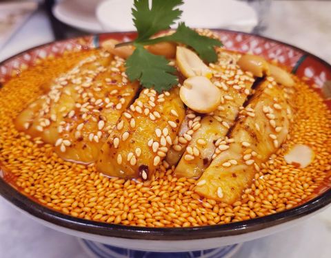 兜兜轉轉老遠看到門口的標誌性物件-白孔雀,終於找到他家店了[笑哭]去的比較早,還是蠻空的,點好菜,上菜速度還是蠻快的!口水雞,看著紅,其他還算可以不算太辣。毛血旺,裡面食材還是蠻豐富的,不過最愛還是血[惊叹][惊叹][惊叹]鹽幫仔姜蛙蛙跳,感覺實在太咸了,雖然本來點的都是重口味的菜。然後有點解辣必備的冰粉和紅糖糍粑ps服務員換骨盤很勤快,