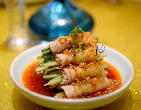 一般来说我是不爱吃辣的,因为我比较怕辣嘛~不过,这家孔雀,好奇怪哦,居然很喜欢哎~从第一次去那家蓝孔雀开始,就喜欢了,好几个菜别有风味,不是说不辣,只是辣的比较诱人。 这家金孔雀开在陆家嘴的国金里面,喔唷,这只孔雀是越变越高大上了啦~ 门口迎接的依然是可爱的白孔雀,整个环境以金色调为主,孔雀装饰, 闻香糊辣肝腰 自打第一次吃就爱上了这道菜,这菜不辣,很香,猪肝是特别特别的嫩,腰花也好好吃。 舌尖上的鲜鲍鱼,一锅红红的,里面货色好多呢。 如意白肉卷,挺好听的名字,有点像蒜泥白肉,不过是不同的风味。 宫保核桃大虾球,是我比较喜爱的一道菜,不亚于粤菜的味道,几个红红的辣椒,让这道菜除了酸甜更多了一种风味。 这里的孔雀雪梨汁感觉更漂亮了呢,好好喝,解辣降火神器,嘿嘿。 它家的甜品我大多数都喜欢,甜甜糯糯的,迷你甜烧白、内江白糖糕还有隆昌醉冰粉…想想就口水,饿了~