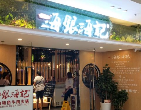 1、阿红母子相约我和太太相聚饭局,8月26日晚上,海银海记食潮汕特色牛肉火锅。这是我们第一次尝新食潮汕特色牛肉火锅,食得不错,品尝牛肉火锅,确有特色美味,几合口味,价钱又算适中,应予点赞。该店位于广州荔湾区宝华路恒宝广场三楼。 (照片1张) 2、海银海记潮汕特色牛肉火锅,是一家连锁经营店。我们就餐的那间店,门口标志为“第85分店”。我们点食如下:雪花牛肉48元/份(2份96元,我傍晚5点45分到店,首先点了雪花牛肉,因为供应量少,又是最好食的牛肉部位,迟了就点食不到了),至尊超大牛筋丸36元/8粒、吊龙肉28元/份、嫩肉26元/份、牛舌28元/份、金钱肚28元/份、潮汕裸条9元/例、白萝卜9元/例、生菜9元/例、油麦菜9元/例、牛骨清汤(火锅汤底)9.9元/锅、茶位含自助酱料5元/位(4位20元)、米饭3元/碗。合计310.90元,人均消费78元。我们4人饱餐一顿牛肉火锅,很好。我留意看一下全店都坐满了,人气旺盛呢。(照片10张) 3、打火㶽美食,最重要是肉类食材新鲜,“潮汕特色牛肉火锅”的牛肉食材是做到够新鲜了。牛骨淸汤做火㶽汤底,刀工切片牛肉各部分厚薄得当,沙茶酱、潮汕辣椒酱等酱料及各式火锅佐料自选食用,都是不错的。值得称赞是,食台上指导食客涮肉秘笈的那张图文并茂的单张,如火锅牛肉、牛舌、牛颈肉、牛百叶等要涮13秒等;那张点菜单张同样有牛全身构成图(肉品图)也做得好,牛的各部分食材(价格)有关说明,令人一目了然。我们参考火㶽涮肉的时间要求,逐一将肉菜涮而熟之,以自选配制的酱料相佐食之,确系够晒好味。尤其值得一赞是雪花牛肉,入口嫩滑而美味十足,至尊超大牛筋丸够晒弹牙而大有嚼头。(照片2张) 4、就餐环境也算是不错的。食台为6座或4座,整个店几十张食台,相互之间亦算宽敞,我们不感觉到旁台有噪声干扰,用餐感觉是舒服的。我注意察看食具碗筷水杯等,也是卫生干净的,服务员也算是积极勤快,招呼回应较快。若说存在问题自然不少,如肉菜份(例)的份量是少了一些了。“潮汕特色牛肉火锅”要做得有好口碑,连锁店开得更多更好,如何真正做到价廉物美,深受食客欢迎,各个方面还须花真功夫下大力气,还须持之以恒做好。(照片1张) 5、餐后或餐前在附近游览有两个选择:一是从宝宝华路直行,左转到十甫路步行街,再到上下九广场游逛。二是顺着宝源路直行,右转入逢源路到荔枝湾涌景区游玩。(照片1张)