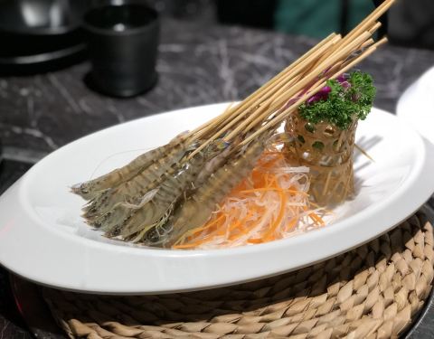 - 斑节虾,斑节虾妖娆的身姿一直保持到了被涮煮出锅,口感鲜甜弹嫩。四喜牛肉,一口气吃到四个部位的牛肉了