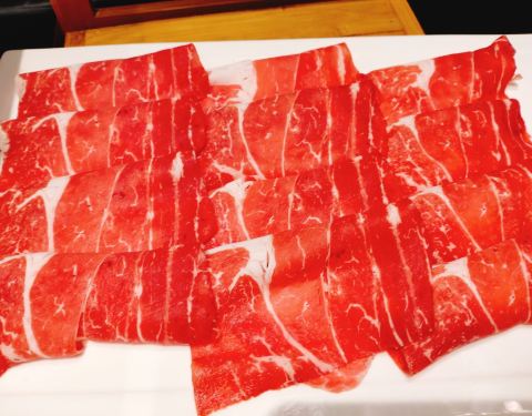 斑节虾,斑节虾妖娆的身姿一直保持到了被涮煮出锅,口感鲜甜弹嫩。四喜牛肉,一口气吃到四个部位的牛肉了
