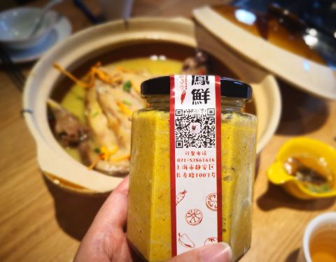 台路上的一炉小凤鲜,门面不算张扬,却很有特色,尤其是那不容忽视的“凤”字。店铺有两层,一层是接待厅,二层是就餐大厅,有卡座,也有包厢,还有那那都有的“凤”。包厢里,满墙壁上贴着老式港片的图片,放着怀旧的粤语金曲。 我们这次吃的是店家升级版的招牌小凤鲜锅底—蟹粉鸡鲍鱼锅底,在原有的花胶鸡里加入了蟹粉和鲍鱼。 本就看起来胶原蛋白感十足的鸡汤里,再加入满满一整瓶的蟹粉,我们强忍着欲滴的垂涎,围观着店员小哥哥把整罐蟹粉倒进汤中。 汤汁自然是极鲜浓的,喝完一碗吃了些鸡肉之后,在准备涮菜之前,又盛了一碗喝,此时这汤的鲜味更甚了一层,味道也浓稠了些。 当吃完了锅里的鸡肉,就该各种涮菜大显身手了。鲍鱼,上桌的鲍鱼依旧是鲜活的,丢进锅里煮够时间,吃起来弹滑鲜嫩。店家供的鲍鱼个头不算小,一整个吞进口中,很是饱满。斑节虾,斑节虾妖娆的身姿一直保持到了被涮煮出锅,口感鲜甜弹嫩。四喜牛肉,一口气吃到四个部位的牛肉了。 冬日里,喝到这样一碗鲜美的蟹粉鸡鲍鱼汤,太幸福了。