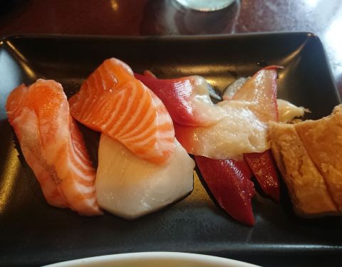 服务不错,东西也蛮好吃的,鱼生很新鲜,就是金枪鱼切太厚了。(话说,楼下的自助餐厅也坐满了人