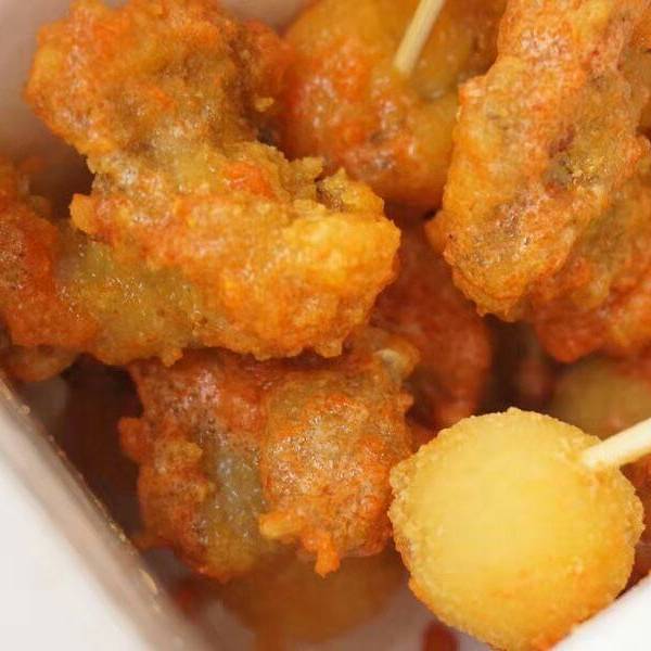 位置也比较好找啦!大洋百货对面!小小的店铺人还挺多滴!小哥很快核销之后等了一会儿就拿到啦!白桃乌龙吼吼喝!但是感觉偏甜了,兑了水之后感觉像茶π,芝士鸡肉卷味道也很nice啦!又点了一份招牌的爆蛋蛙蛙,...位置也比较好找啦!大洋百货对面!小小的店铺人还挺多滴!小哥很快核销之后等了一会儿就拿到啦!白桃乌龙吼吼喝!但是感觉偏甜了,兑了水之后感觉像茶π,芝士鸡肉卷味道也很nice啦!又点了一份招牌的爆蛋蛙蛙,蛙蛙要的蛋黄味,份量还可以,外酥里嫩,里面有小小的土豆球也很好吃。鸡柳要的微辣,味道也很赞,