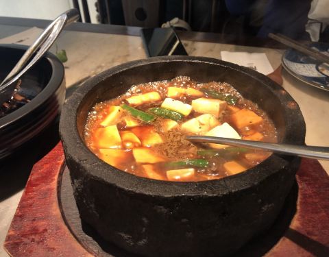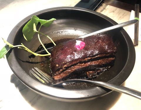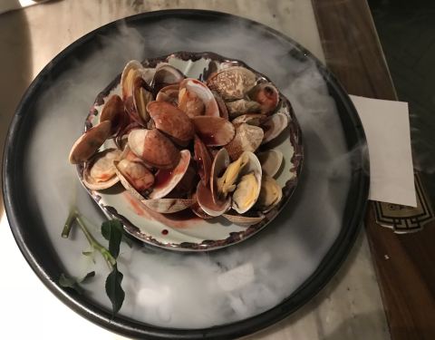 杭菜馆,这几年来,分店越开越多,且每一个都生意兴隆,从年轻人喜爱的网红店逐步成长为广受大众欢迎的连锁餐饮企业,坚持用心制作创意菜,保持稳定的水准,完全当得起色香味俱全这个美食界的最高荣誉。 这次用餐点了古越文火牛肉、南乳花蛤、寿司糯米鸭、酸菜鱼和XO酱炒西葫芦。 感觉古越文火牛肉做得最棒,黑陶碗,盛着炖得酥软的牛肉,入味鲜香又不老,那个专用的底座,花环形,圆圆的孔,让人想起中秋圆月,以及江南水乡那些古老的石拱桥,“古越”的名字也许就是从这里来的吧…… 南乳花蛤是在云雾缭绕中上桌的,属于自带仙气的那一位…… XO酱炒西葫芦,做得入味又保持西葫芦的鲜脆,火候掌握精准…… 寿司糯米鸭味道不错,略略有些油,可能有些食客会更喜欢…… 酸菜鱼的鱼肉嫩,酸菜脆,口味略重,很开胃口…… 总体说来,又是一次愉快的用餐,推荐给大家。