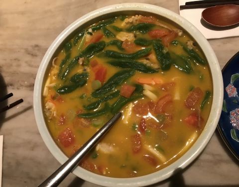 去过多次的杭菜馆,万象城中,四楼溜冰场旁边,非常好找。菜式一如既往地精致,店家还在动脑筋上新菜,比如XO酱炒西葫芦,入味又爽脆,量也不少,简直是惊喜了。乾隆鱼头是桂满陇的招牌菜,鱼头炖豆腐,相比菜价,鱼头的量少了些,味道中规中矩,算是无功无过,但没啥亮点,担不起招牌菜的名头。还点了另一招牌菜古越文火牛肉,上菜时,看见是一小碗,以为量少,吃了才发现,这深深的小碗,量并不少。牛肉炖得很入味,入口酥软,和龙眼一起炖,咸中带甜,有特色,当得起招牌菜的名头。总体来说,菜式精美,摆盘漂亮,菜味也不错,性价比较高。