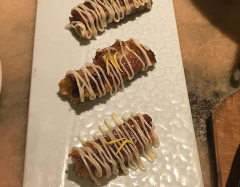 桂满陇万象城店,是我常去的如食堂一般亲切的杭菜馆。从当年的网红店,到如今遍布市区每一个角落的连锁餐饮企业,开一家火一家,适合男女老少一切人群。如此亲民的餐馆,自然是有他独到的经营理念和过硬的菜品质量。摆盘的讲究一如当年,端上来的菜,不管量多量少,总是精美如画,难得还始终味道好吃。这次点的甜筒牛油果沙拉是以前没有点过的,味道很好,既是冷菜,外面包了一层饼干甜筒,也可以当点心。东坡肉是百吃不厌的经典,石锅沃豆腐的味道不在东坡肉之下,端上来时还在沸腾状态下,翻滚的泡泡冒着热气和香气,妥妥地勾出了你的馋虫……
