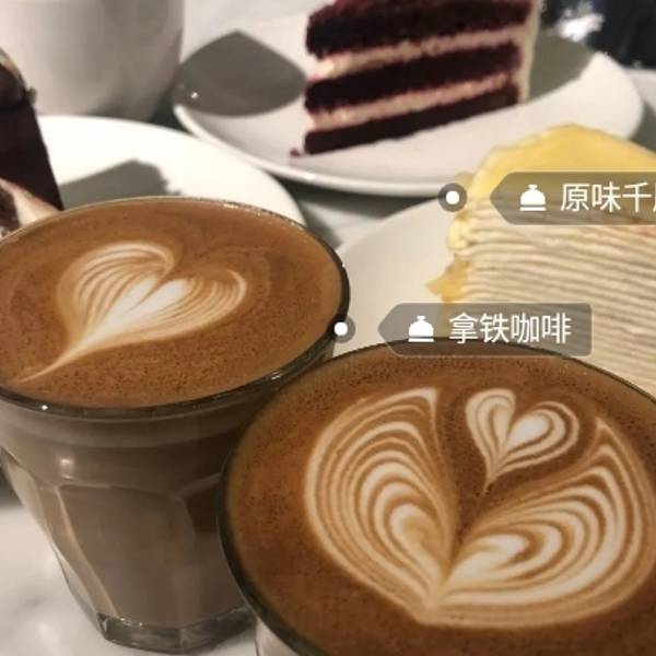 - 拿铁咖啡咖啡很浓味,拉花很漂亮蓝莓芋泥奶酥芝士蛋糕不甜好吃。环境很不错的咖啡馆,最近好像也很火的样子