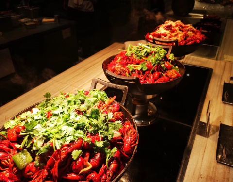 来上海迪士尼玩,入住了客莱福诺富特酒店,晚上去餐厅就餐时晚上刚好是小龙虾自助。餐品种类很丰富,龙虾有冰镇的,十三香和蒜蓉的,口味很多,个人很喜欢冰镇的,口味超级赞赞赞!餐厅就餐环境安静,吃的很好,除了龙虾还有成都串串,其他各种海鲜,三文鱼,蟹腿,口贝之类的,还有其他热菜,粥,甜点,饮料,水果,羊肉串之类的,能想到的都有了,很满意的一次就餐体验,很优惠!满意满意满意!下次还来!