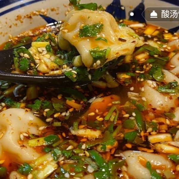 因为第一次来看到菜单上的菜都想吃不容易选了几样特别想尝的长安葫芦鸡外皮酥脆里面的肉挺嫩滑有点吃炸鸡的感jio~需要蘸干料不然没味道桂花稠酒寒冷天里喝一杯暖哄哄的酒感觉非常不错淡淡桂花味道酒也蛮醇香老醋松鼠鱼爱吃酸的朋友们不要错过了很下饭开胃浆水烩酥肉南方人第一次尝试泡汤的酥肉很神奇只是尝鲜一下还有一个凉皮蛮好吃的第一个上的菜五分钟光盘少了花生和麻酱多了蔬菜丝有种清新感觉最后一个酸汤饺子就是汤饺子啦可能要跟汤搭配着吃?一口汤一口饺子我们只是吃了饺子还有很多菜想尝试的无奈只有四个人这几个菜已经吃撑了下次有机会再尝试别的菜品