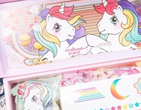 ...高的新品,有和小马宝莉合作的云朵芝士,其中白色宝莉是蜜桃口味,还有和rio合作的蜜桃口味的面包