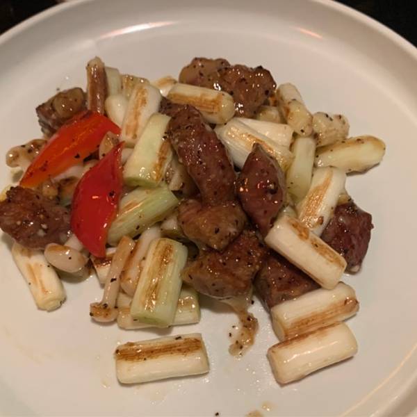 「黑椒葱爆牛柳粒」牛肉是真的好,汁多肉嫩,但分量也是真的少,198一份性价比太低了。