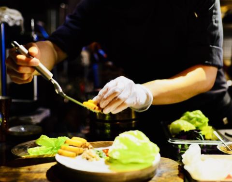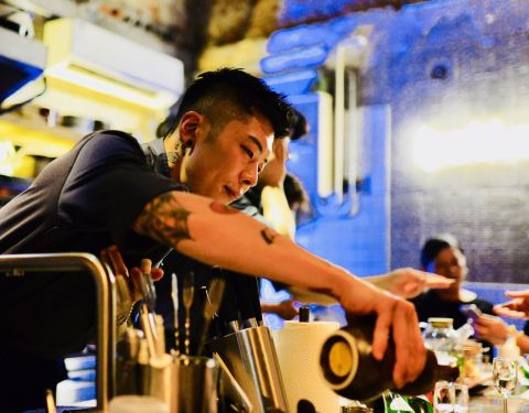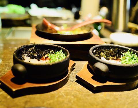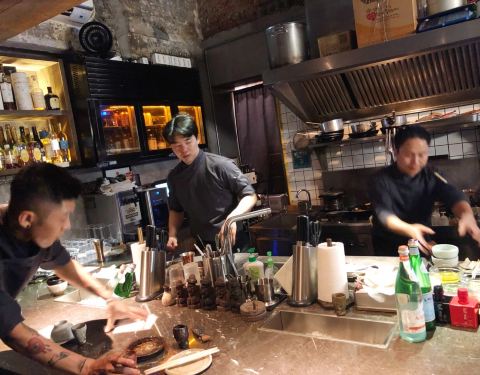 韩式创意居酒屋,吧台座位围绕着开放厨房