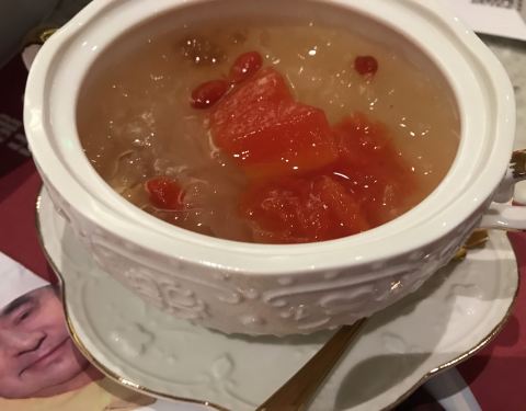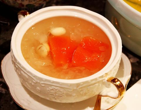 - 夏季还推出了很多小甜品,桃胶银耳羹,真是深得我心,冰镇的口感更加好喝,感觉又养颜又解辣