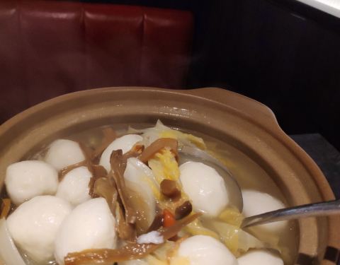 离公司还算近的一家店,同事去吃过,说不错,于是约了同事一起中午慢慢走到店里,提前预约了,店里生意不错,点了个大鱼头,还有各类菜,猪蹄大锅炖的,还蛮酥还入味的,虾也蛮新鲜的,鱼头有点辣,不过味道还不错,鱼丸汤好鲜,鱼丸也Q弹好吃