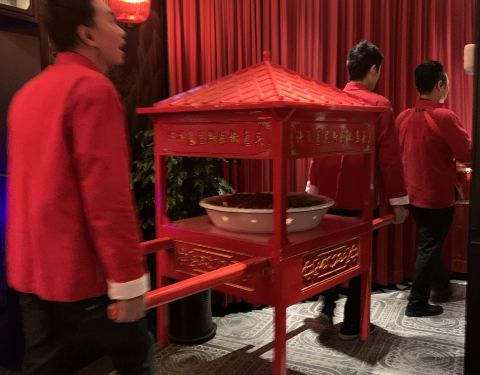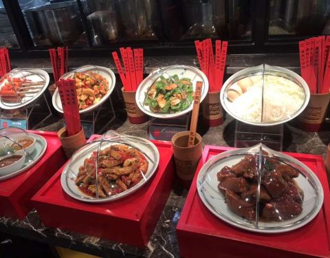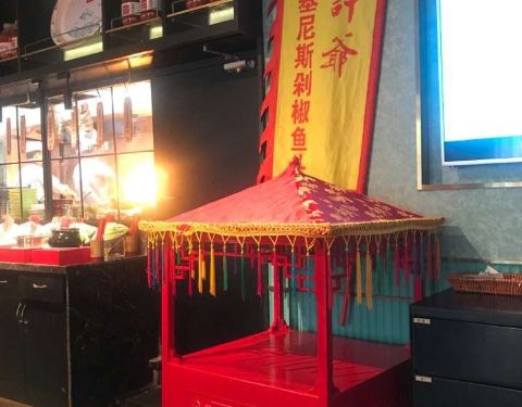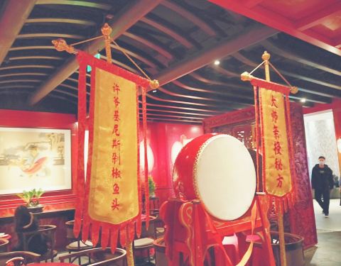 店面的规模本身就不小 而且人气也很足 浓郁的中国风装修风格就很吸引眼球 这里巨大的鱼头是最大的卖点 如果碰到有人店招牌 还有上骄子这样可怕的活动来送鱼头 不过菜的价格也算比较高的
