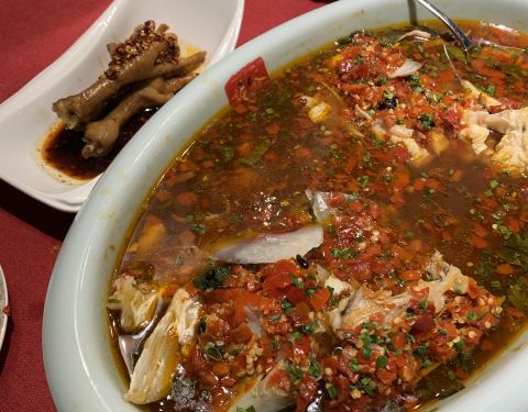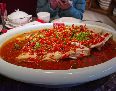 - 说不错,于是约了同事一起中午慢慢走到店里,提前预约了,店里生意不错,点了个大鱼头,还有各类菜,...