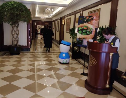 星期二中午去顺风吃饭,生意不错啊,包房基本满了,工作日中午包房没有最底消费,进门领位的居然是机器人,超好玩的,不过只有一个啦,后来的人服务员只说了一下房间号就让你自己去找了,饭店实在也大,好多的包...