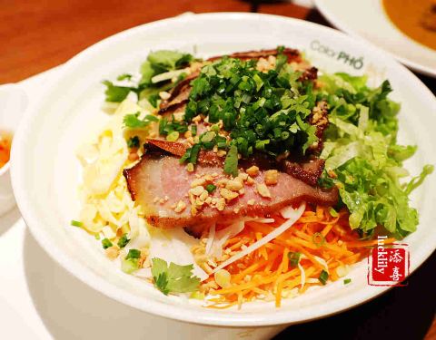 自从去年国庆去了趟越南,就爱上了越南菜。前阵子远洋乐堤港搞促销,9.9元抢了100餐饮券。终于给了我一个来越色拔草的机会。 🍽店名:Color PHO(远洋店) 📍地址:丽水路58号远洋乐堤港4楼A408铺 🚙交通:公交坐至大关桥站下车步行368米,自驾6月底前免费停车 ⏰营业时间:11:00-21:00 💰人均:92元 越色在商场的四楼南侧。餐厅装修的非常有格调,随处都洋溢着浓浓的法式风情。尤其中间的长条桌,放了一颗许愿树,还有各式有趣的摆件,真是太吸睛了。 菜品种类挺多,一百块吃个工作餐,一份河粉和春卷刚刚好。 |招牌火车头河粉^ 58元。广告图里是生牛肉,不过点餐的时候可以选熟的哦。另外还有免葱、香菜、洋葱等等各种要求可选,也可以根据喜好加料。 吸粉五步曲:第一步喝汤,一个字,鲜!第二步放配菜,九层塔和豆芽的量很少哦。不像越南的路边小店,都给很多呢。泰椒放进去,口味层次更丰富。第三步,挤青柠汁,灵魂之一。第四步,滴上鱼露,灵魂之二。此时,一碗正宗的火车头河粉已经完成了。第五步,筷勺并用,快乐的吸粉!河粉里除了牛肉,还有牛百叶哦,用料足的。粉的口感很滑,连汤带粉一起吃,真的非常过瘾。 |芒果鲜虾卷^39元。这大概也算是种越南春卷吧。炸的热量高,尤爱这种低卡的。里面包的有鲜虾、芒果、黄瓜和米粉。整体口味很清爽,蘸酱吃更有风味。