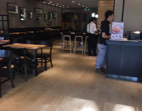 兴业路原家乐福楼下新开的大家乐,窗明几净,装修布置和设施看起来都不错,员工都好有礼貌。