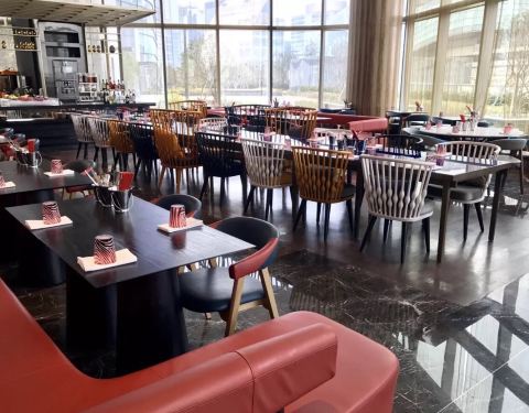 餐厅装修风格摩登现代,提供种类丰富的自助餐品,琳琅满目,摆盘精致。为了保证出品口感,还有现烤的牛排、…