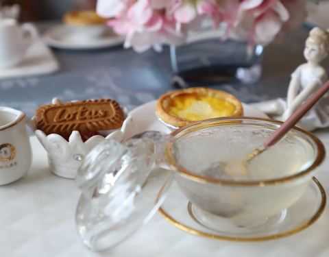 粉红色的门面真是太好找了,店内环境优雅舒适,音乐舒缓心情。服务员态度特别好。选了蓝蝶花茶,淡淡的甜味。清凉透彻的淡蓝色。好美啊!燕窝蛋挞是现烤的,刚出炉热乎的很好吃。还搭配了三盘小食,享受了一个美好的下午时光。
