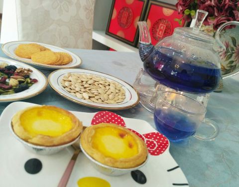 燕窝蛋挞是现烤的,刚出炉热乎的很好吃。服务员态度特别好。好美啊!选了蓝蝶花茶,淡淡的甜味