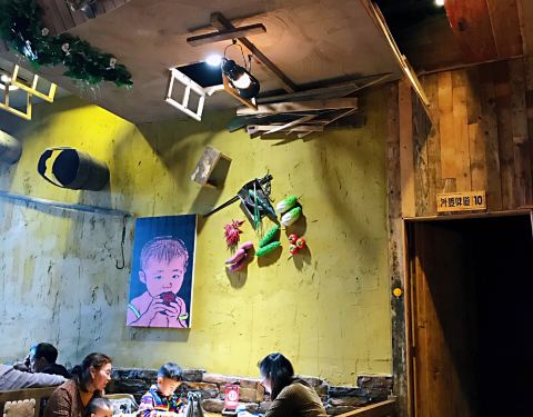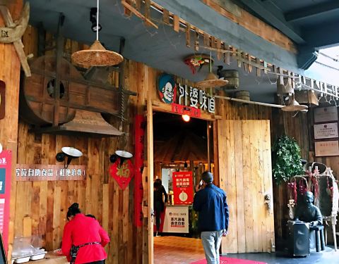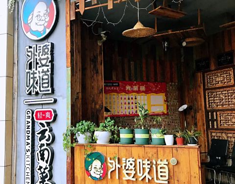外婆味道(朝九晚五店)位于昆明金瓦路福缇商业中心二楼,地理位置不错,交通便利。 这家店门面较大,门口除了摆了很多凳子,供等位的顾客坐,还摆了不少水果、瓜子等零食。 我是六点以前到达的,餐厅还有不少空...