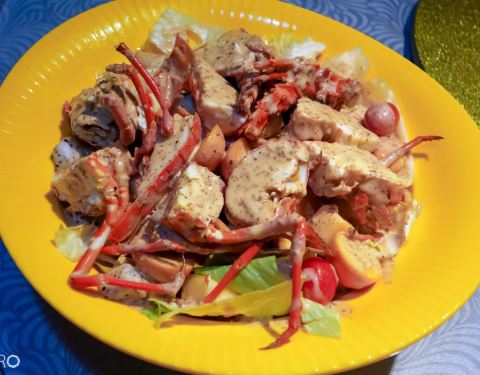 202大排档最最出名的菜莫过于龙虾沙拉了,不知道该怎么评论这道菜,是该说有创意呢,还是说奇葩呢,还是说独特呢,或许每个人都有每个人的看法,不过我觉得嘛,作为一份食物,好吃健康永远是第一位的。龙虾沙拉采...