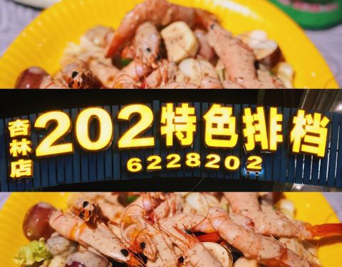 202杏林店地址在鳌美路中铁十一局旁,靠近月美池公园,停车很方便,我们进店的时候,适逢某工厂在一楼举办尾牙宴,场面十分浩大和热闹。 我们预定了2楼的包间,包间有各种大小,装修简单舒适,融入海蓝色的海...202杏林店地址在鳌美路中铁十一局旁,靠近月美池公园,停车很方便,我们进店的时候,适逢某工厂在一楼举办尾牙宴,场面十分浩大和热闹。 我们预定了2楼的包间,包间有各种大小,装修简单舒适,融入海蓝色的海洋元素,十分清爽宜人。 龙虾沙拉依旧是第一道重头菜,几年前202因为这道菜火遍厦门,被不少餐厅争先模仿,但202龙虾沙拉的地位依旧难以撼动。超大超饱满的龙虾肉新鲜饱满,吃起来紧实有嚼劲,搭配的胡麻酱汁更加烘托出虾肉的鲜甜味美,底层铺的蔬果冰凉爽口,也很快被吃个精光。 刺身拼盘,一般在大排档比较少见,更难得的是202的刺身质量非常好,不输大多数日料店的新鲜肥美,而且摆盘也很美,每次来都要点一大盘~ 沙茶一品锅,沙茶汤底十分浓郁香醇,甜、咸交织,比例刚刚好,油而不腻,汤直接喝到不想停,锅中的菜也十分丰富,鱿鱼、大肠、猪肝沿、猪血、豆腐……不同的食材,不同的口感,浸泡在同样优秀的沙茶汤中,一口菜,一口汤,温暖又满足。 葱烧深海鱼,几乎每一块肉都带皮,胶质十足,外面裹层过油,再加上微微粘质的酱汁,吃起来微微粘牙,之后便是鱼香浓郁肉质扎实的鱼肉,混进一些葱油的香气,更让人欲罢不能。 风味羊排,肉质非常非常非常嫩!肥瘦兼具,孜然粉的比例恰到好处,直接用手套捏着啃,超级过瘾。 干煎鸡,在锡纸上煎制,鸡肉依旧保持着丰富的肉汁,嫩滑的带汁鸡肉,调味也刚刚好,不会盖过鸡肉本身的香味,端上桌香惊四座。 番茄鲍鱼,又是一道新的高颜值菜品,一整颗番茄上面铺着一粒又大又饱满的鲍鱼,鲍鱼嚼起来紧实有弹性,微微渗进一些番茄的鲜甜微酸,更加适口。 咖喱鱼丸也是大排档罕见的菜色,202的咖喱也是同样优秀,浓郁香醇,鱼丸q弹爽口,这个时候就差一碗米饭了! 鱿鱼蒸芋丝,蒸的火候刚刚好,鱿鱼蒸熟但依旧鲜嫩清甜不会过硬过老,中间的芋丝浓香甜美,一起入口口感层次很丰富。 舌腰活跃,腰子嫩滑爽口,完全没有异味,辣度是闽南人不用心悸的程度,下面的木耳白菜也很入味好吃。 主食点了厦门古早虾面,光是咸中带甜的虾汤就已经十分令人欢喜了,爽滑的面条,搭配瘦肉虾仁,给人十足的幸福感。 招牌黑蒜汤怎能错过呢,寒气逼人的冬日晚餐,有了这道热气腾腾的滋补神器,更是锦上添花。