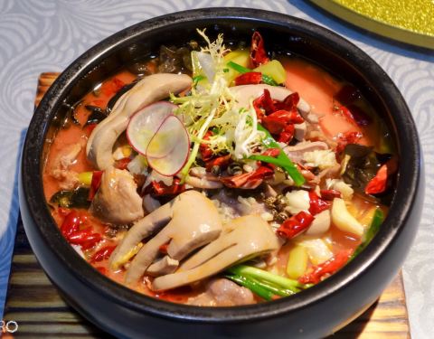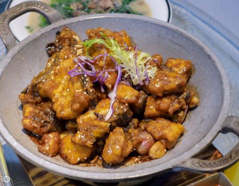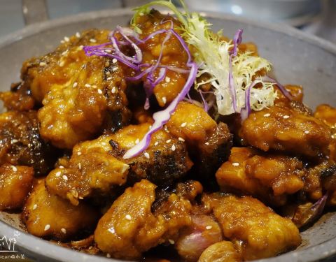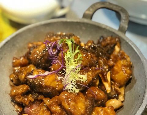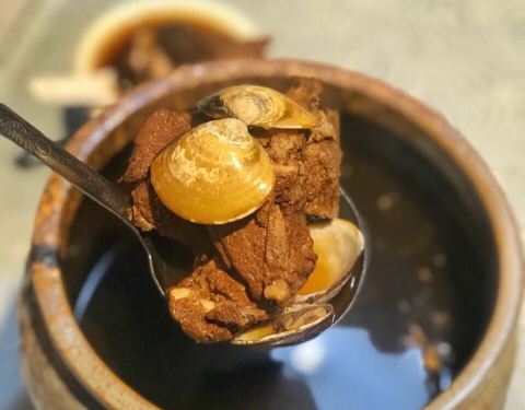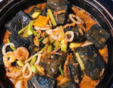 出门在外全程follow必吃榜,好不容易找到一家集美地区的分店,份量惊人堪比东北菜[笑脸]团购了168元的来厦必吃套餐,即便三个人分享都绰绰有余。 吃不起龙虾色拉的我,只能退而求其次地靠虾沙拉解解馋,新鲜大虾佐以清新爽口的生菜,还有圣女果哈密瓜黄瓜葡萄火龙果及脆枣丰富口感,浓郁的千岛酱汁搅拌均匀非常入味。 石锅手工黑豆腐尽管以量取胜,可惜不是鸡蛋豆腐制作的,故而口感不及预期惊艳。十全大补的黑蒜汤非常有料的说,捞起的肉简直多到可以炒一盘菜,黑吃黑不知不觉走起了养生路线。 我能说海鲜饼实在太过油腻了嘛,里面包裹虾仁及爽脆的荸荠,倒还合我心意。最爱筋道Q弹的咖喱鱼蛋,一口气承包半盆完全停不下来,没有米饭我可以多吃点菜。