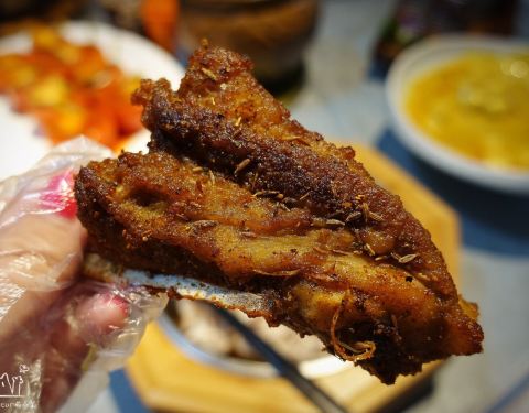 风味羊排,肉质非常非常非常嫩!肥瘦兼具,孜然粉的比例恰到好处,直接用手套捏着啃,超级过瘾