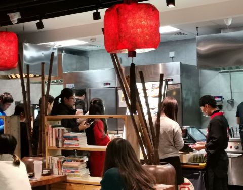 上海陕西路新会路路口的巴黎春天六楼,出电梯右转有一家“和府捞面”,这次点的是“香草番茄汤.猪软骨面”,感觉很好。现在柜台购买了就餐票,然后选座。仔细端详了这家捞面馆,一长溜的店面只在两头有稍大一些的...