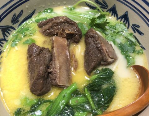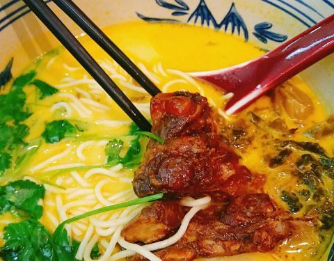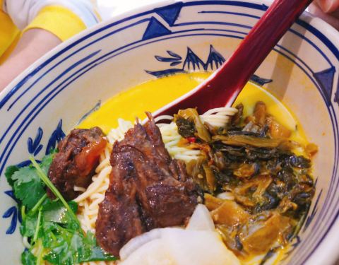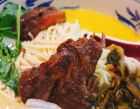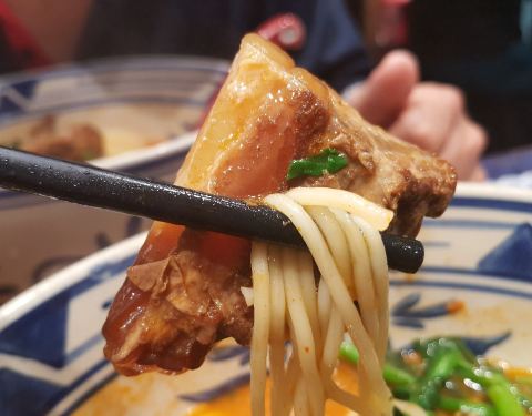 让汤水的味道更加充分地渗透到面条里,然后惬意地送入嘴里,面条柔软而不酥烂,汤水色浓味鲜,咬一口猪软骨