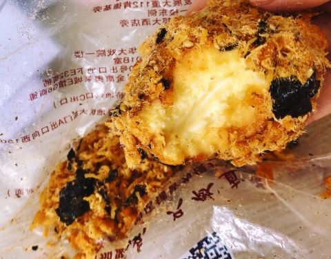 - 一口下去是满满的肉松,里面的蛋糕属于奶香十足的,吃到最里面还有夹心,口感一直没变,还是非常美味的