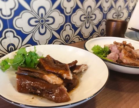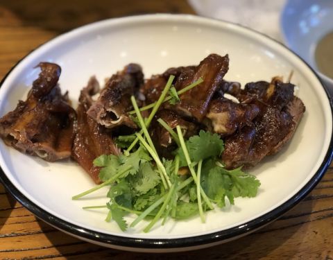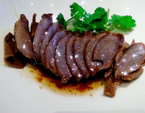 家门口路过无数次 本来想去吃楼上餐厅 苦于要排队 索性就下来吃了 味道还不错 服务还需要加强 点了鹅肉和鹅翅 下面都配了鸭血 蘸料碟是问服务员才送上来的。隔壁桌看我们有两种酱料也喊服务员上了一份,可见不是...