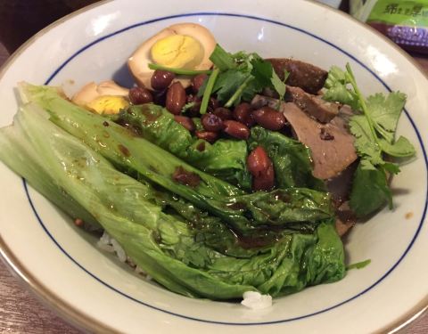 鹅肉有点老,咬起来略吃力,还是正宗口味就该这样?除了鹅肉配菜有生菜和花生米,配的汤酸酸的比较特别