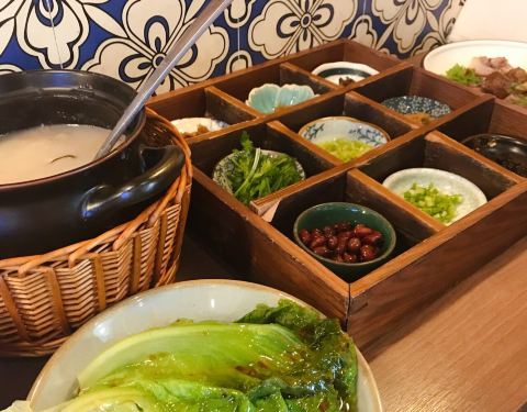 特色卤味店~点了小吃边吃边等潮汕粥,安排合理~ 【卤猪蹄膀】蹄膀卤的很烂,入口即化,特别像小时候的味道,很香 【卤狮头鹅掌】大概三个左右切开,很有嚼劲儿,下面垫的鸭血也蛮好吃的 【鲜虾海鲜粥】先是上了九宫格小菜,很精致很爹的~拍照然后是粥,料很足,️虾,小生蚝,蛤蜊,还有像是干贝,真的很好喝,很鲜美~而且真的超级大份,感觉三个人都足够 【卤汁灼生菜】都很荤所以搭配了生菜,味道OK,点多了撑死啦~ 店子虽然不大,工作日中午人还蛮多的,坐的吧台位也很不错,看了店子还有外卖可以叫,666
