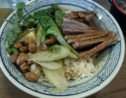 去虹桥艺术中心看话剧,离开演时间尚早于是在附近找吃晚饭的地方,选了招牌狮头鹅商务套餐,比普通鹅要贵个几块钱。鹅肉有点老,咬起来略吃力,还是正宗口味就该这样?除了鹅肉配菜有生菜和花生米,配的汤酸酸的比较特别。