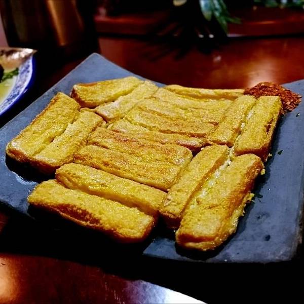...豆腐宴,在众多的豆腐菜肴中紫晶最爱的是那一份瓦片臭豆腐,外脆如酥、内嫩如乳,配上干蘸料吃忒过瘾