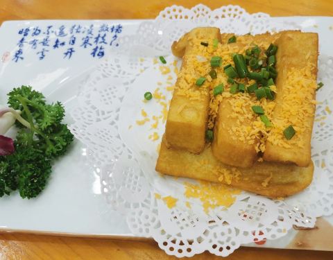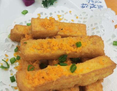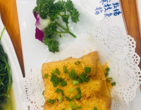 - 椒盐手工豆腐,豆腐炸的酥脆,吃上一口,里面是嫩滑的豆腐,入口即吃到淡淡的豆香,太好吃了