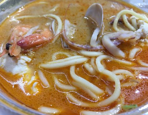 蓝家军海鲜沙茶面躲在中山路泰山路巷子里面,面积不是很大,但是有二楼可以坐,这家沙茶面店看起来又很多年历史,他们家的汤底确实很有特色,沙茶汤非常的浓郁好喝,而且配料也不少,看起来非常的新鲜,服务态度也可以。
