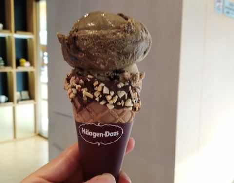 哈根达斯的双球华夫蛋筒很好吃,名字太长记不全俩球的称呼,好吃才是重点,都是奶米色系的视效,口感是浓郁甜腻得可以接受~,这家店很方便