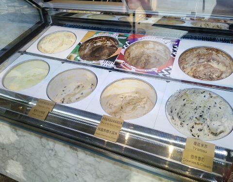 特别喜欢这家哈根达斯。就在百联中环里面。哈根达斯里面的冰淇淋种类,还真的是特别多的。现在上海已经是冬天了,但是里面的人气还是特别的旺盛。这次我在哈根达斯里面选择了两个单球。我直接让售货员打包带走带回家去吃。