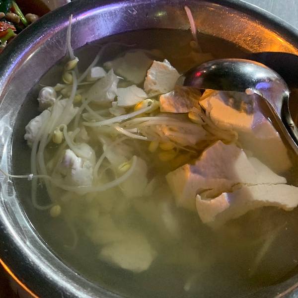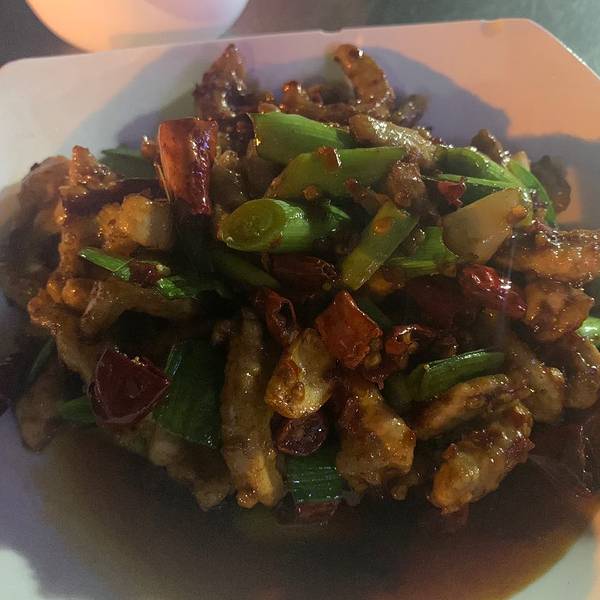 贵阳市的非著名苍蝇小馆,只卖中午12点到14点,17点到20点30分。餐馆只有一人掌勺,店内只有4张桌子,门口的露天座位比店内还多。以上就是这家小店的各种标签。之前来吃过一次,今天第二次复盘。 晚上7点半到店,门口的桌子都满了,只能先坐在塑料板凳上等位,先点菜。老板告知太忙了无法做汤,汤菜可以选择水豆腐,也只好这样了。他家的菜价比其他家要贵出3成,招牌菜是三鲜蹄筋,主打宫保系列。 大概过了20分钟有桌子。又过了半小时才终于上菜,期间催过2次,无奈只有一人炒菜,总共等了50分钟,实在难熬。 三鲜蹄筋:68一份,传统的味道,汤汁浓缩鲜美,在贵阳估计很难再吃到如此地道的味道了,蹄筋、玉兰片、酥肉、午餐肉等等。 宫保板筋:同样是传统的味道,唯一的缺点就是辣椒炸的火候不够,嚼不动,筒筒辣椒要是能下饭一起吃就完美了。