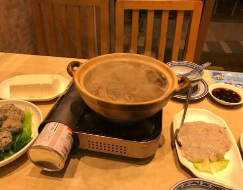 ...锅,火锅是事先煮好一部分带着锅底一起上来自己可以加其他配菜,鲮鱼球味道不错煮过之后粉粉的很好吃