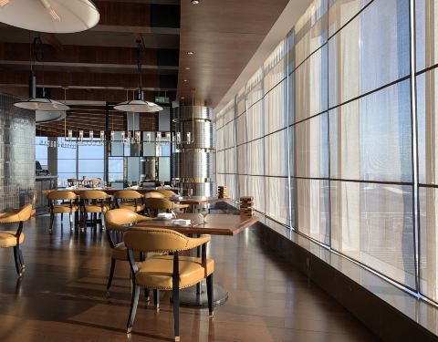 位于顶层的美式餐厅,可以俯瞰美丽的夜景。