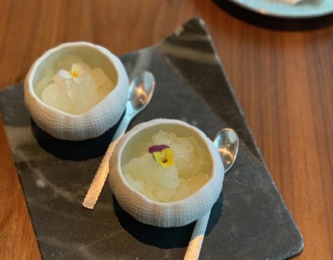 餐厅视野特别棒,特别在夏季的晚餐时间去,七彩的漫天晚霞棒呆了。 【清口小吃】柠檬香槟雪芭