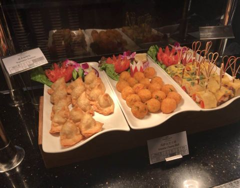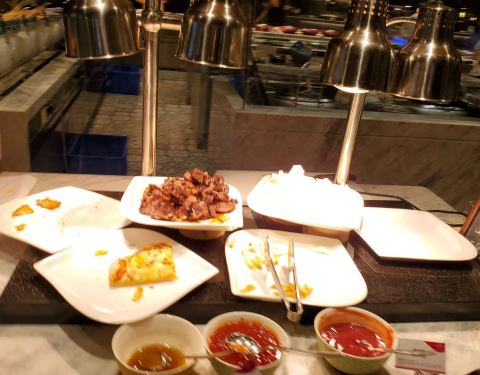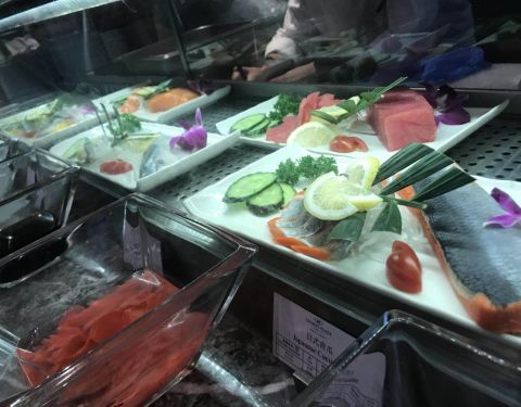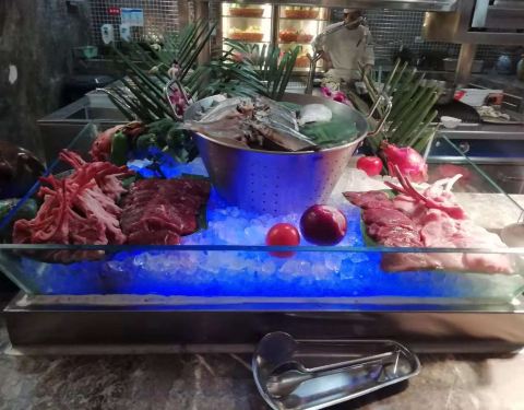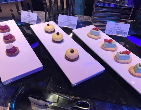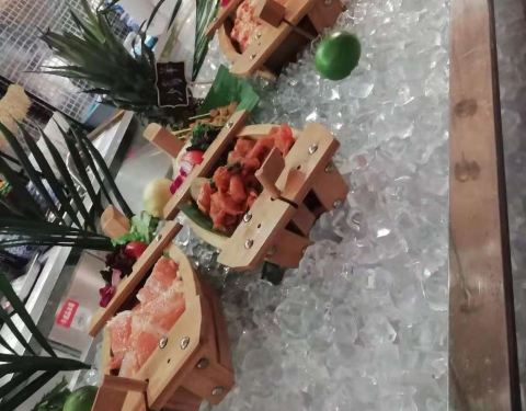 跟朋友一起找了一些周围比较好一点的自助餐。意外中看到了这家。抱着试一试的心态来的。一进门看到的全是各种精美甜品很有食欲。然后就是三文鱼 寿司 现开生蚝各种海鲜等等(虽然品种不是特别多.但是看着特新鲜)过了就是印度菜啊牛排羊排等 都不是那种吃一口就不想再动嘴的食品 感觉食材很不错(本人算是一个资深吃货)总体感觉物有所值