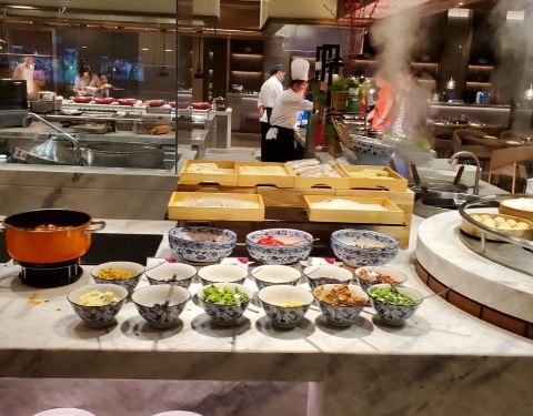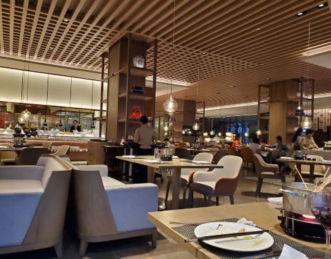 第一次跟朋友一起来这家酒店用餐,进门给人感觉非常不错,干净卫生,菜品种类丰富多彩,口感相当不错,服务热情到位,还有小火锅,清汤跟红汤底,非常人性化口味,可以吃辣椒的朋友可以吃红汤底相当不错,还有饭后小甜品也是相当多,下次还来这里